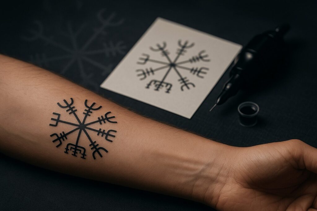Some people draw a stave on paper and keep it in their wallet, while others carve one into wood as a charm. Because intent is central, the symbol is often paired with a short spoken line.